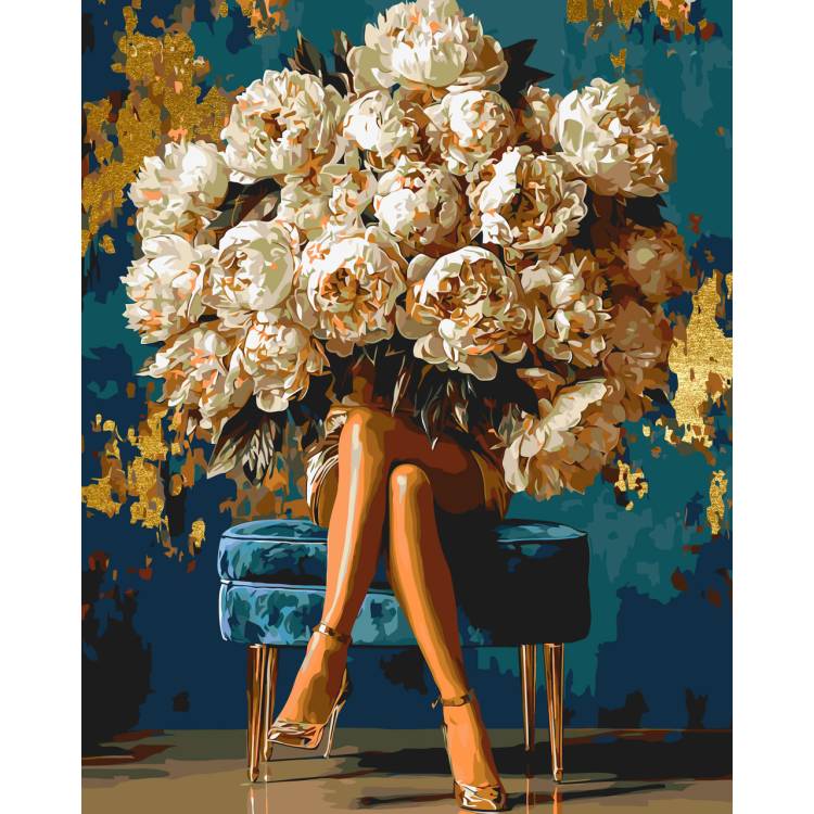 Картина-розмальовка Дівчина квітка, півонії розкоші з фарбами металік розфарбовується без змішування фарб.