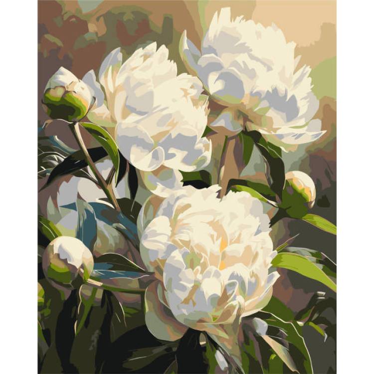 Картина-розмальовка Гармонія півоній розфарбовується без змішування фарб.
