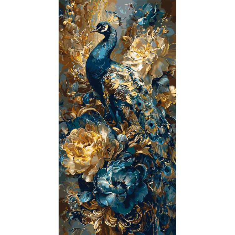 Картина за номерами: Павич серед квітів з фарбами металік, LW5183