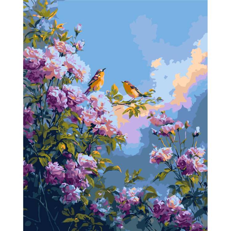 Птицы среди цветущих пионов